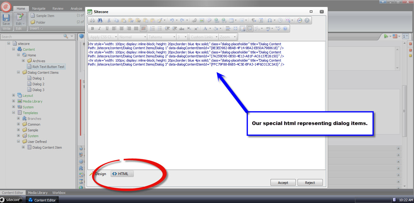 Home » Custom Sitecore Rich Text Editor Button: Inserting Dynamic Content » Inserted Three Dialogs HTML