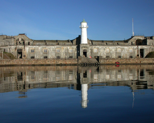 After uploading the lighthouse image into the media library, its width was set to the maximum specified, and its height was scaled down proportionally: