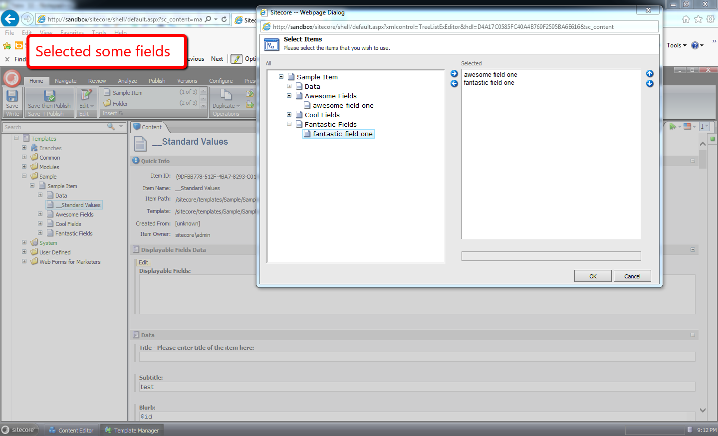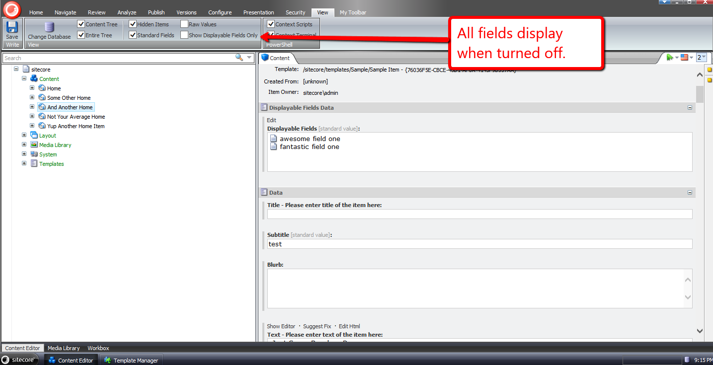 I then went to an item that uses this data template, and turned on the displayable fields feature: