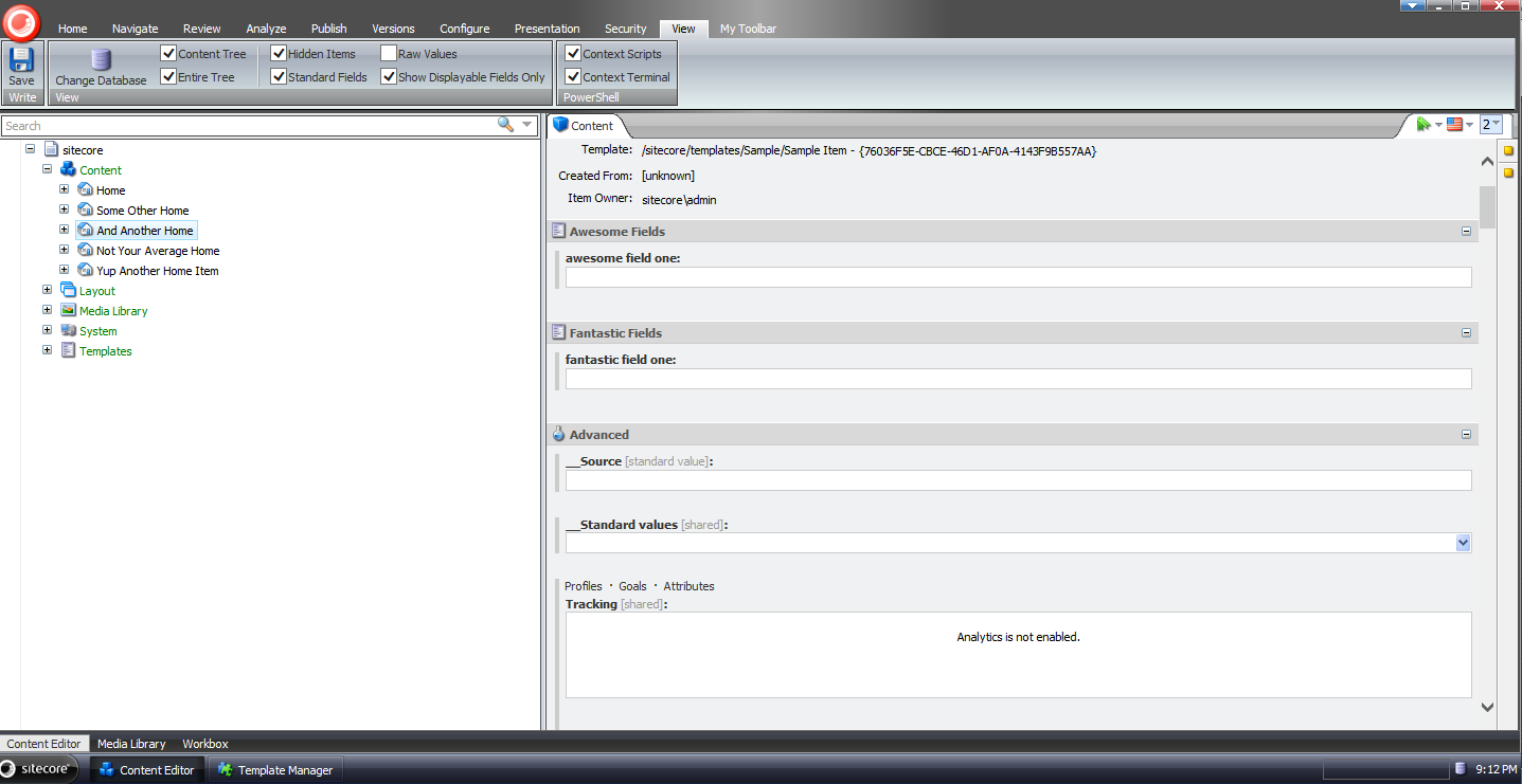 Plus, we don’t want to show the Displayable Fields TreelistEx field when the feature is turned on, and we are on an item. This field should only display when we are on the standard values item when the feature is turned on — this is how we will choose our displayable fields.