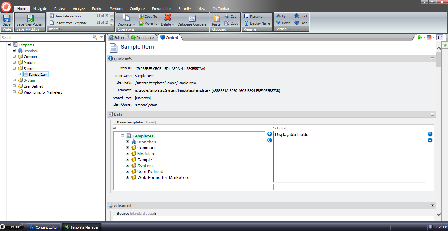 I then set this as a base template in my sandbox solution’s Sample Item template: