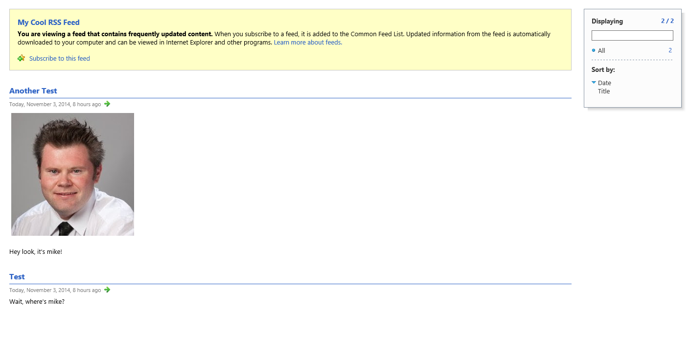 After publishing everything, I loaded the RSS feed in my browser and saw the following: