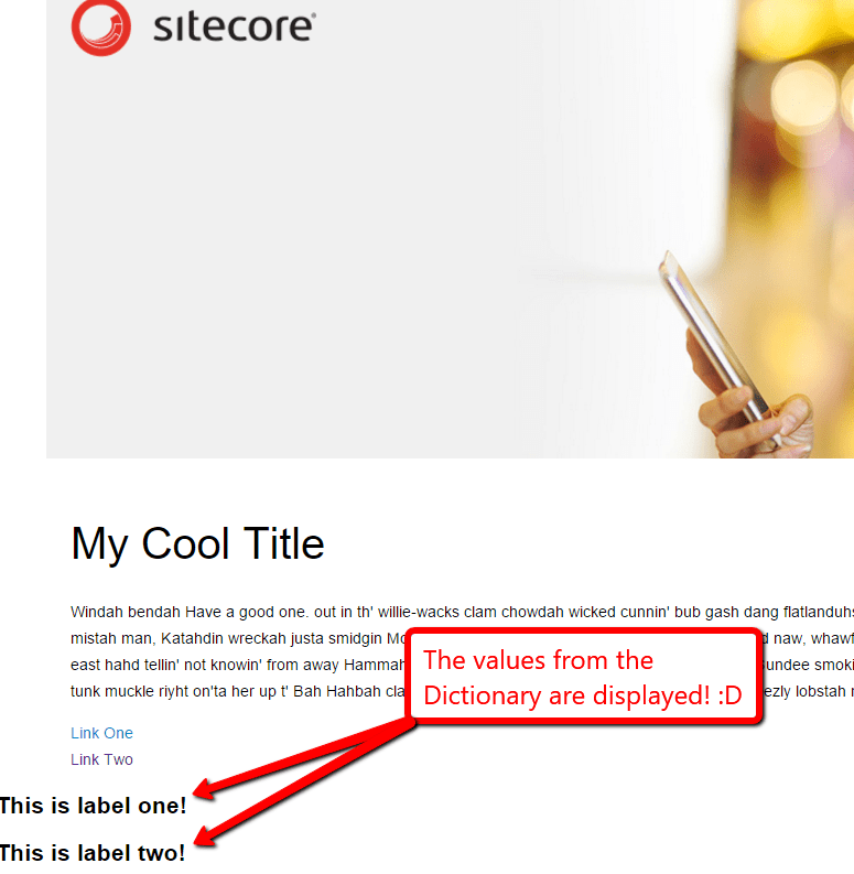 Home » Inject Dependencies Into Sitecore MVC Razor Views Using a SitecoreHelper Extension Method » dictionary-values-displayed