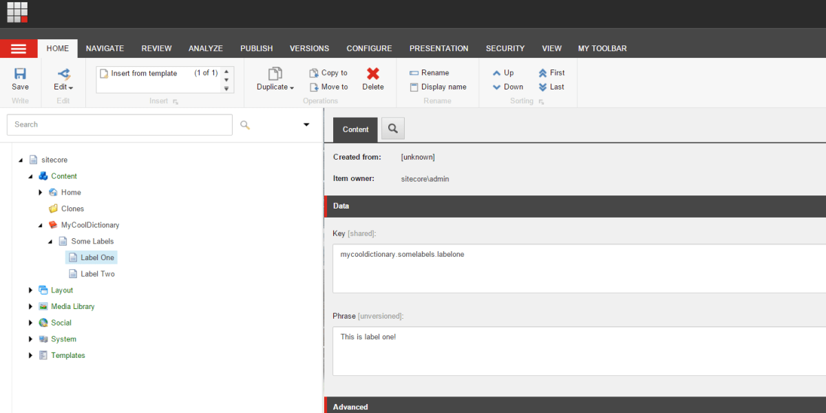 Home » Inject Dependencies Into Sitecore MVC Razor Views Using a SitecoreHelper Extension Method » label-one-dictionary