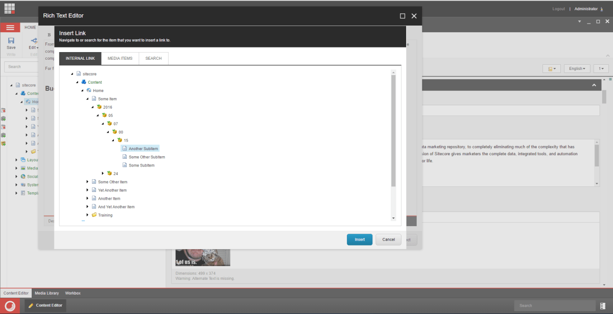 Home » Omit Sitecore Bucket Folder Item Names from Page Item URLs » bucketed-links-insert-link-1