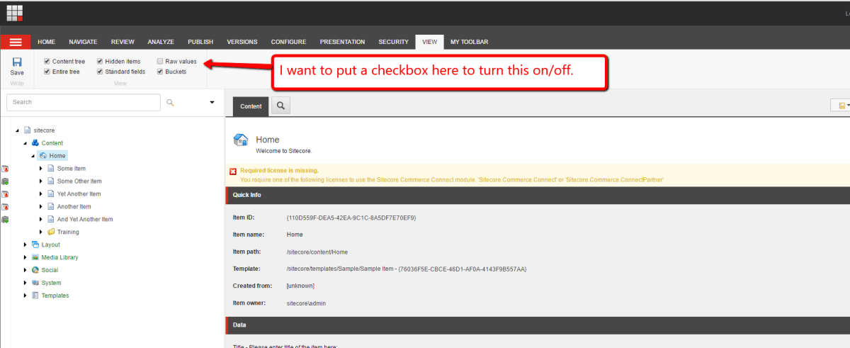Home » Display How Many Bucketed Items Live Within a Sitecore Item Bucket Using a Custom DataView » bucketed-items-count-view-ribbon