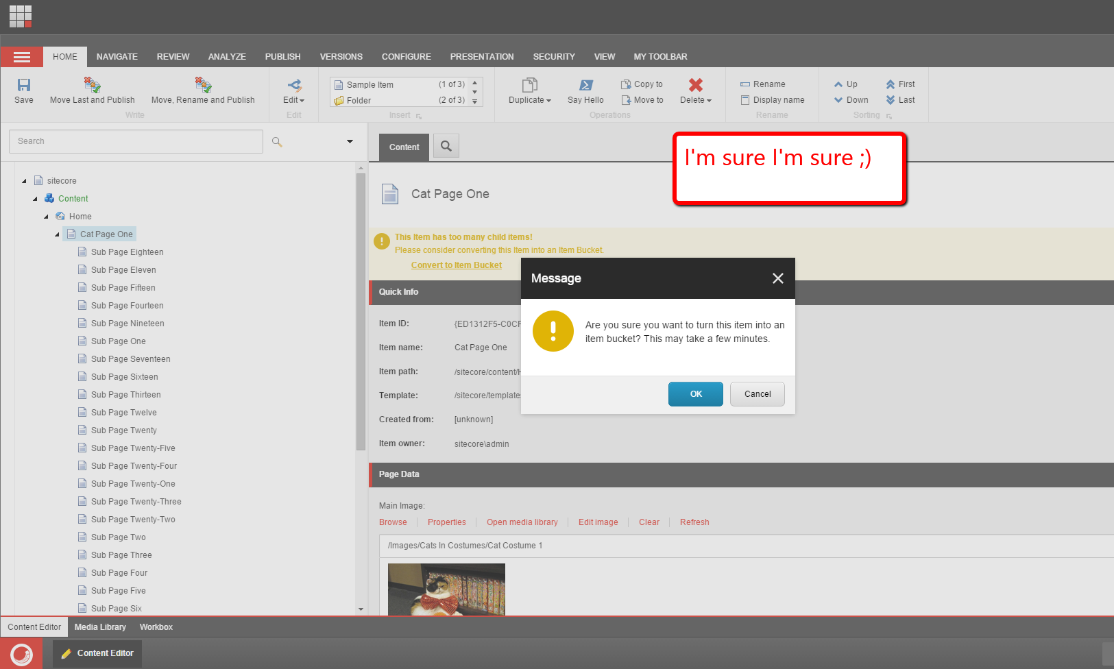 As you can see it worked! The Home Item in my content tree is now an Item Bucket: