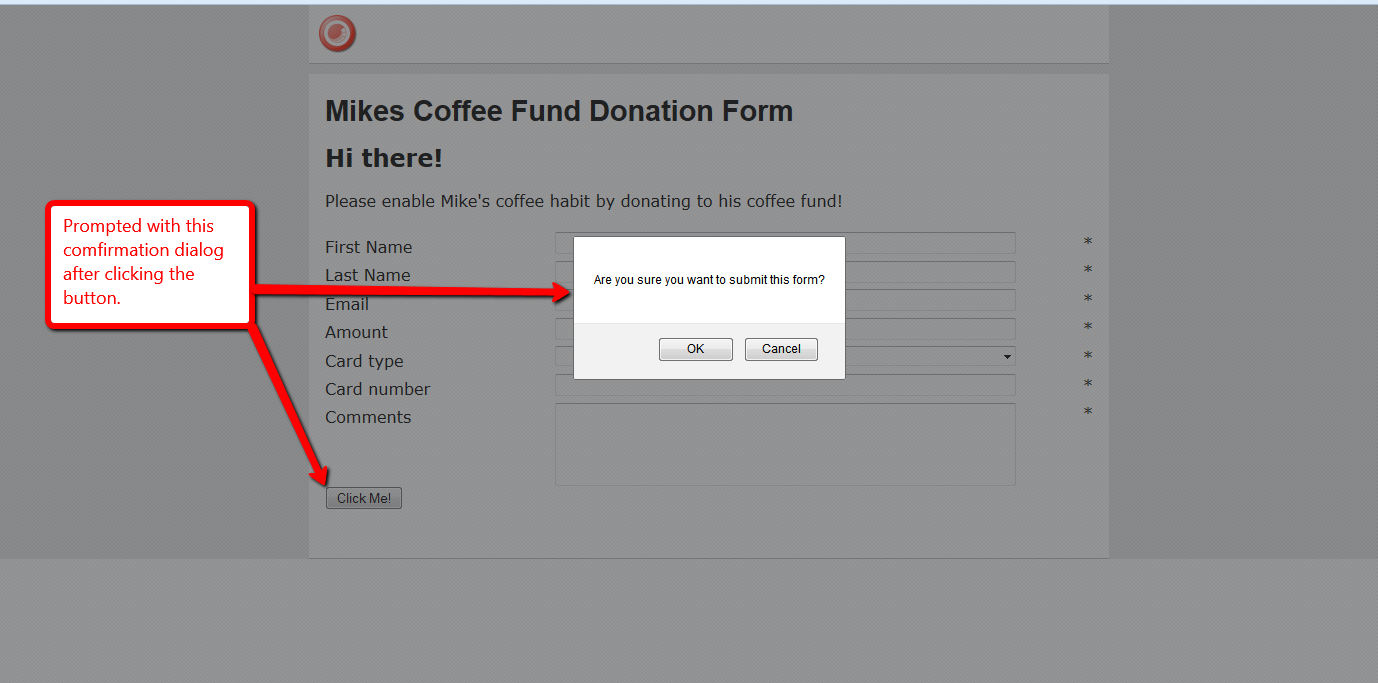 As you can see, I was prompted with a JavaScript confirmation dialog box.
